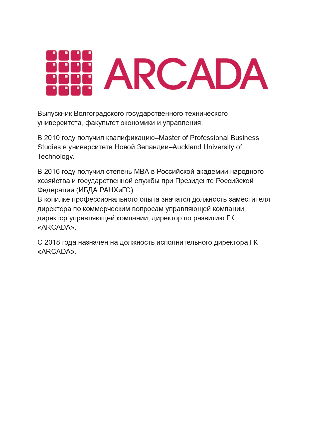 Группа компаний «ARCADA» продолжает помогать развитию городов, обустраивать городские пространства, создавать рабочие места и усиливать региональные центры за счет качественной коммерческой инфраструктуры.
