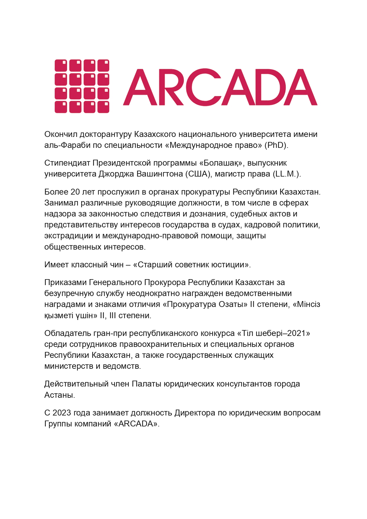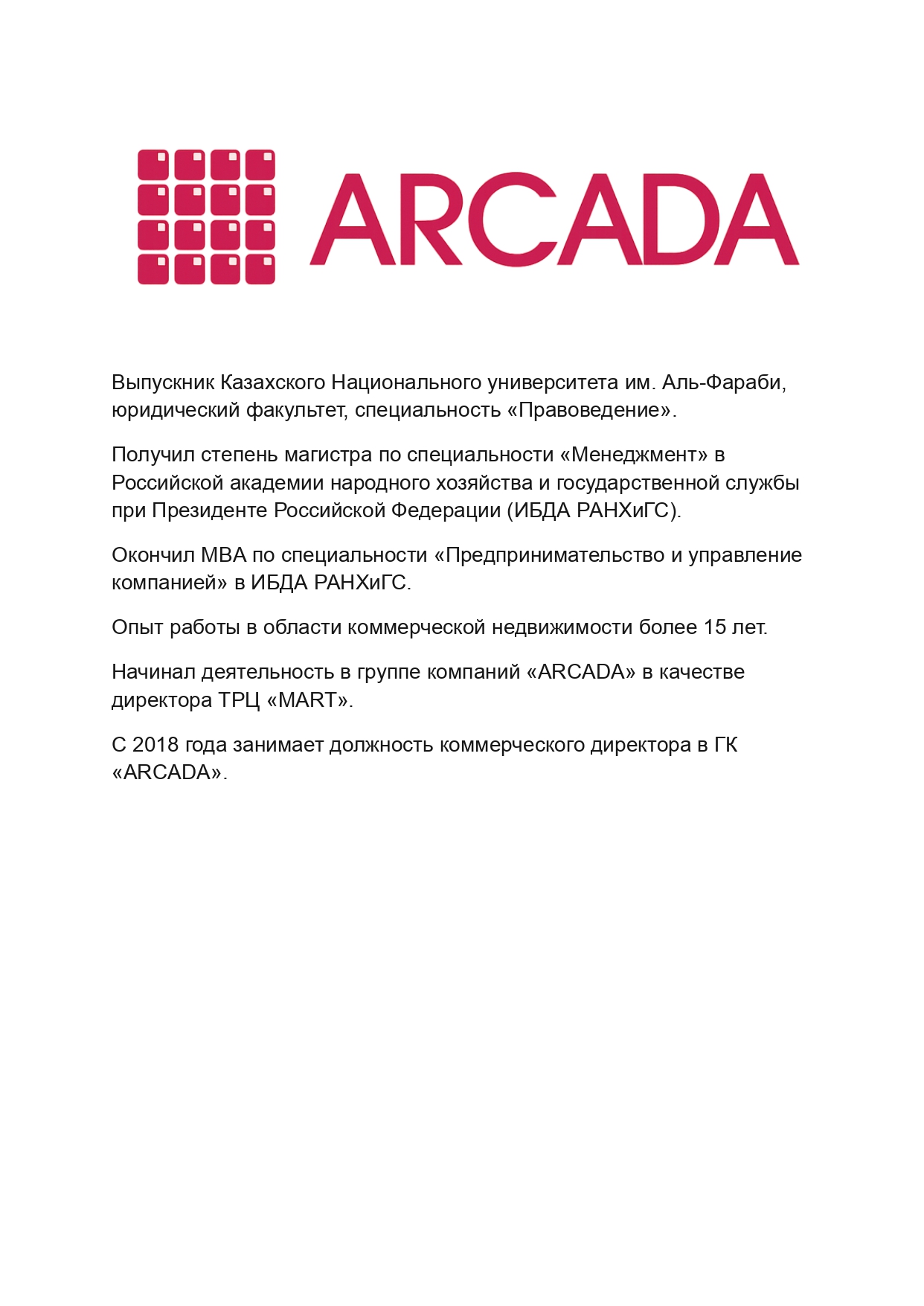 Группа компаний «ARCADA» - девелоперская компания в сегменте коммерческой недвижимости в Казахстане. Компания ведет проекты на всех этапах: от предпроектных работ до строительства, ввода в эксплуатацию и управления готовыми объектами.
