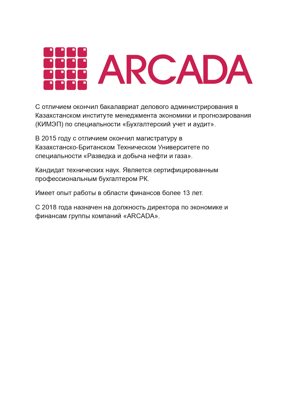 Группа компаний «ARCADA» - девелоперская компания в сегменте коммерческой недвижимости в Казахстане. Компания ведет проекты на всех этапах: от предпроектных работ до строительства, ввода в эксплуатацию и управления готовыми объектами.